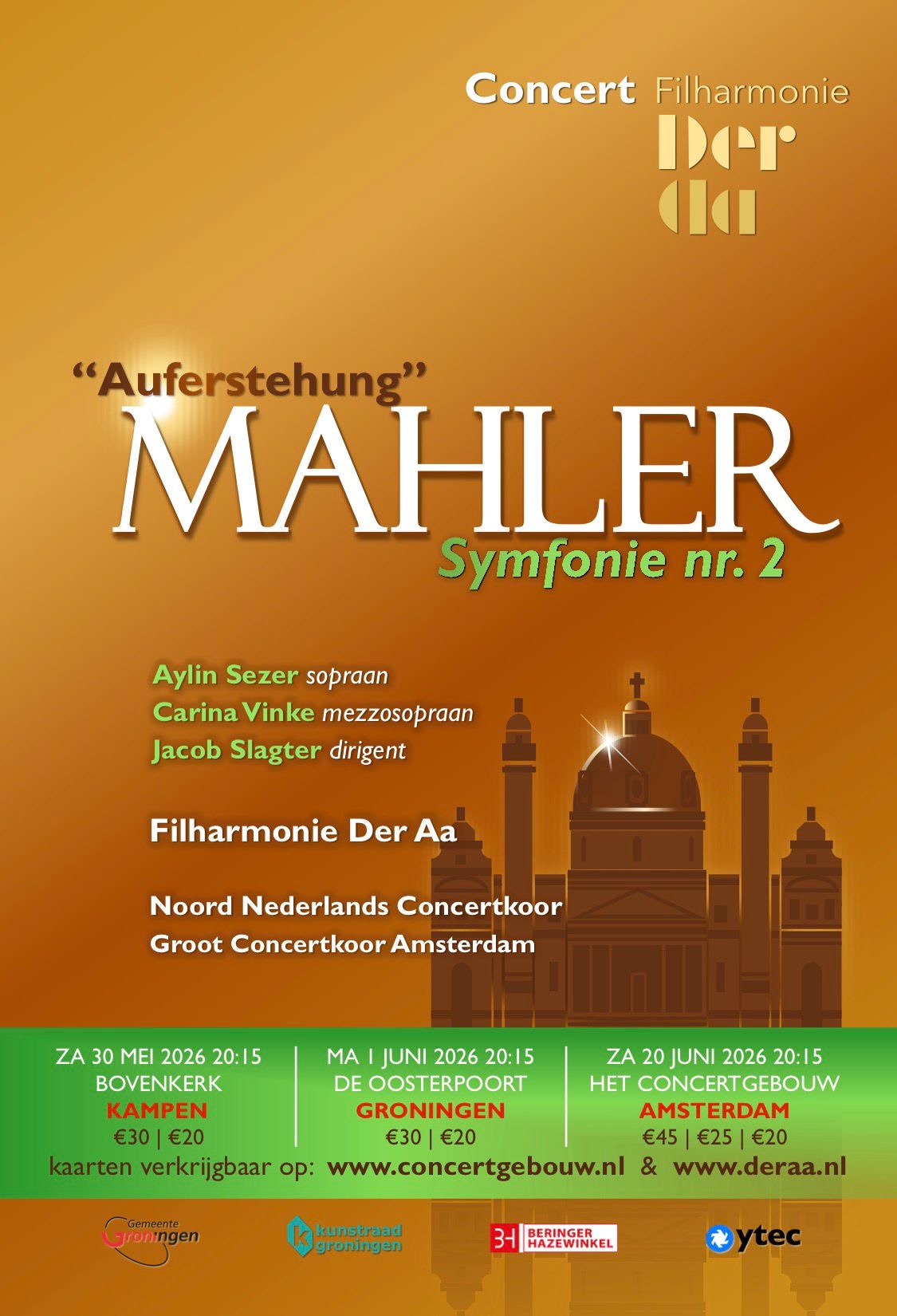 Filharmonie Der Aa viert in 2026 haar 15-jarig bestaan. Het orkest zal de Tweede Symfonie in Kampen (Bovenkerk) en in Groningen (De Oosterpoort) uitvoeren met het Noord-Nederlands Concertkoor. Ter afsluiting van dit lustrumjaar geeft het orkest haar slotconcert op 20 juni 2026 in de Grote Zaal van Het Concertgebouw te Amsterdam, in samenwerking met het Groot Concertkoor Amsterdam. Mahler dirigeerde de Tweede Symfonie zelf op deze plek in 1904 met het Concertgebouworkest.